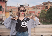 화이트 티셔츠 + 후드 청자켓 + 블랙 스키니진