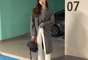 A라인으로 퍼지는 코트와 안쪽에 보이는 다채로운 니트가 눈길을 끄는 귀여움