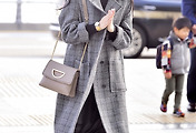 브라운 자켓 + 블랙 스커트 + 브라운 체인숄더백 + 블랙 니하이 부츠